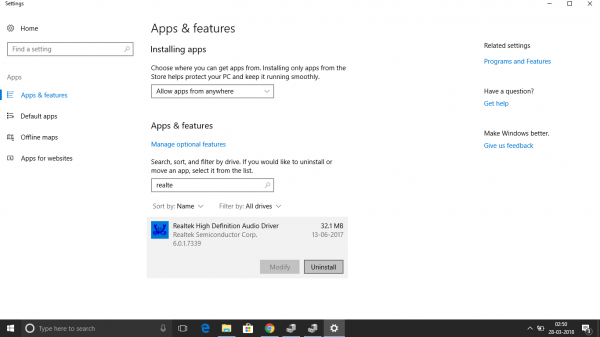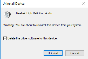 Click on Realtek High Definition Audio Driver and hit the option with Uninstall the driver.