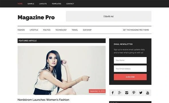 This theme comes in black and white and allows for a more modern approach to designing magazine templates. It allows a widget-friendly interface that can be used by bloggers who wish to make money from their site content. It allows sufficient space for widgets, slideshows, and multiple ads.