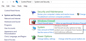- – Click on Windows Defender Firewall Program.