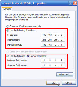 – Preferred DNS server: 8.8.8.8