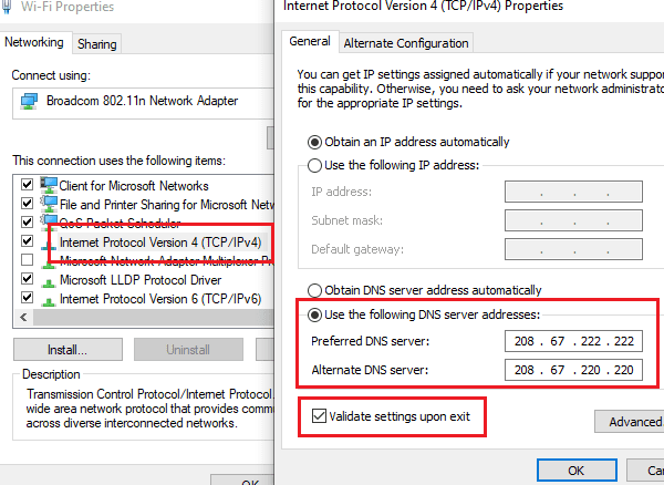 Preferred DNS server: 208.67.222.222