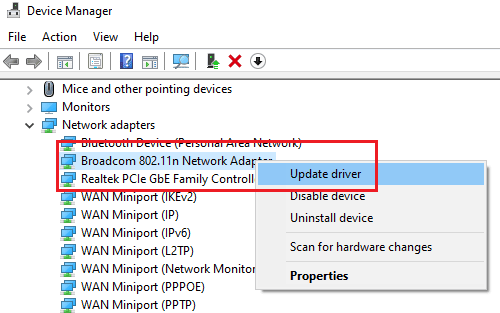 Right-click on the Broadcomm Network Adapter and select Update driver.