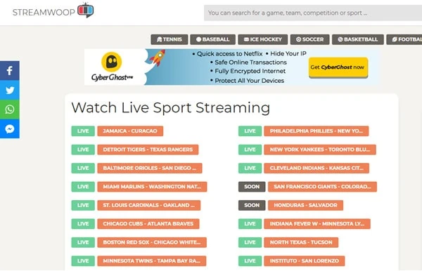 StreamWoop uses the very same basic company model as various other complimentary sporting activities streaming websites. It collects and also indexes a range of links from various sources that end-users can click to stream sporting events. Whether you are a baseball fan or a basketball fan, you will discover a match to live stream on StreamWoop. The platform likewise supplies soccer, golf, boxing, cricket, auto racing, tennis, and much more. The website itself boasts a basic format that nearly anyone can utilize easily.