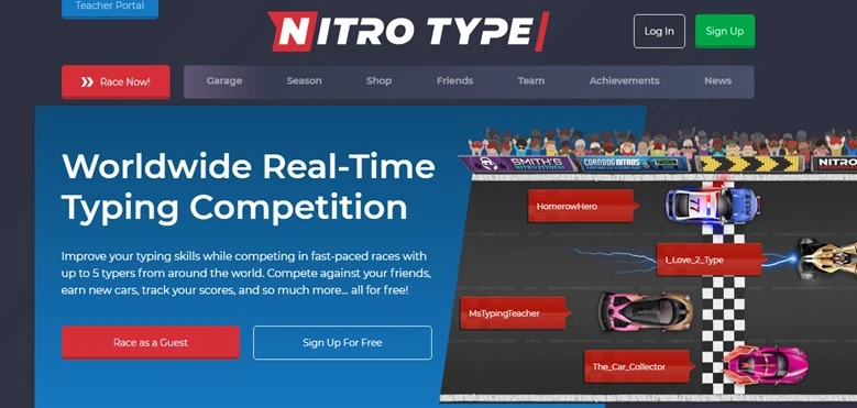 Nitro Type is a wonderful fun typing game for kids that is suitable for both teachers and students. This program, created by teaching.com, is excellent for typing practice. This typing game for kids is a racing game with a global real-time typing battle.