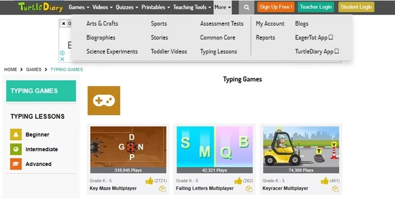 We are discussing the best free typing games for kids of all grades. In addition to grade-level sorting, ABCya provides several child typing games that are organized into categories such as Math, Food, Story, Art, Music, and so on. Although there is no distinct category for typing games yet, users may find them by putting “TYPE” in search box and pressing Enter.