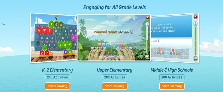 One of the best free typing games for kids online web app on the list. This website provides its visitors with three options: Games, Lessons, and Tests. It is suggested that you begin with the Lessons, then practice with the Games, and lastly, the Tests to see how much you have learned. Other aspects of the easy typing games available include: