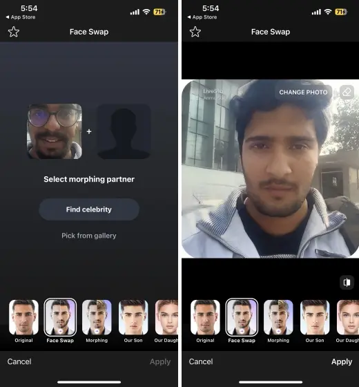 If you want to replace a celebrity’s face in a shot, this face-swapping app is the genuine thing. FaceApp AI Face Editor includes over 60 very realistic filters. To morph a picture, you may choose from a selection of celebrities or upload a new face. The face-swapping option is included in the app’s picture editing area. It not only combines the faces pretty effectively, but it also saves the transformed picture to the gallery for free.