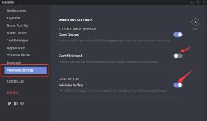 In Discord, click Settings picture, and then find out Windows settings; on the right side, choose to Start decreased or Minimize to Tray to see which one can make you use the Microphone in talking teams when playing games.