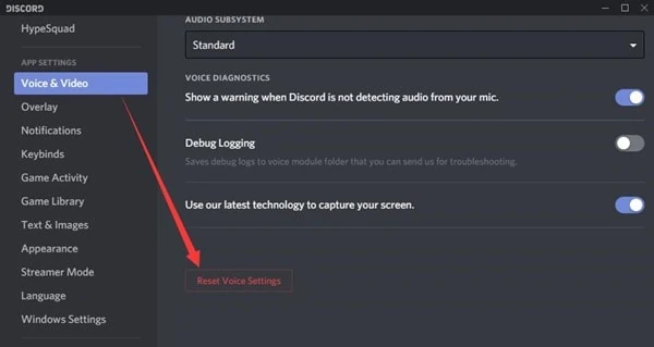 In Discord setups, under Voice & Video, on the best pane, slide down to the bottom, and then you will observe Reset voice setups.