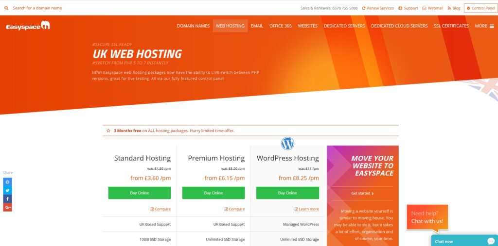 Easyspace’s dedicated servers start at $79.99 per month, offering competitive pricing for businesses seeking reliable and secure hosting solutions.