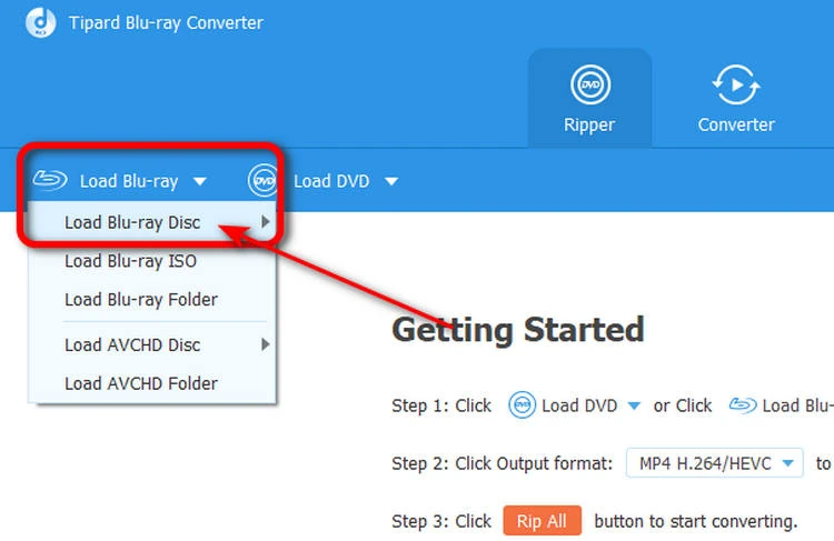 Then, it’s time to start Blu-ray ripping. Go to the Tipard Blu-ray Converter program. Click the Load Blu-ray button on the top left side. You should be able to choose your Blu-ray source.
