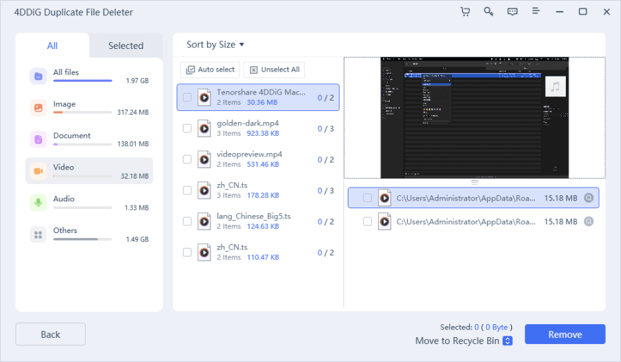 - Detailed preview before deleting duplicates.