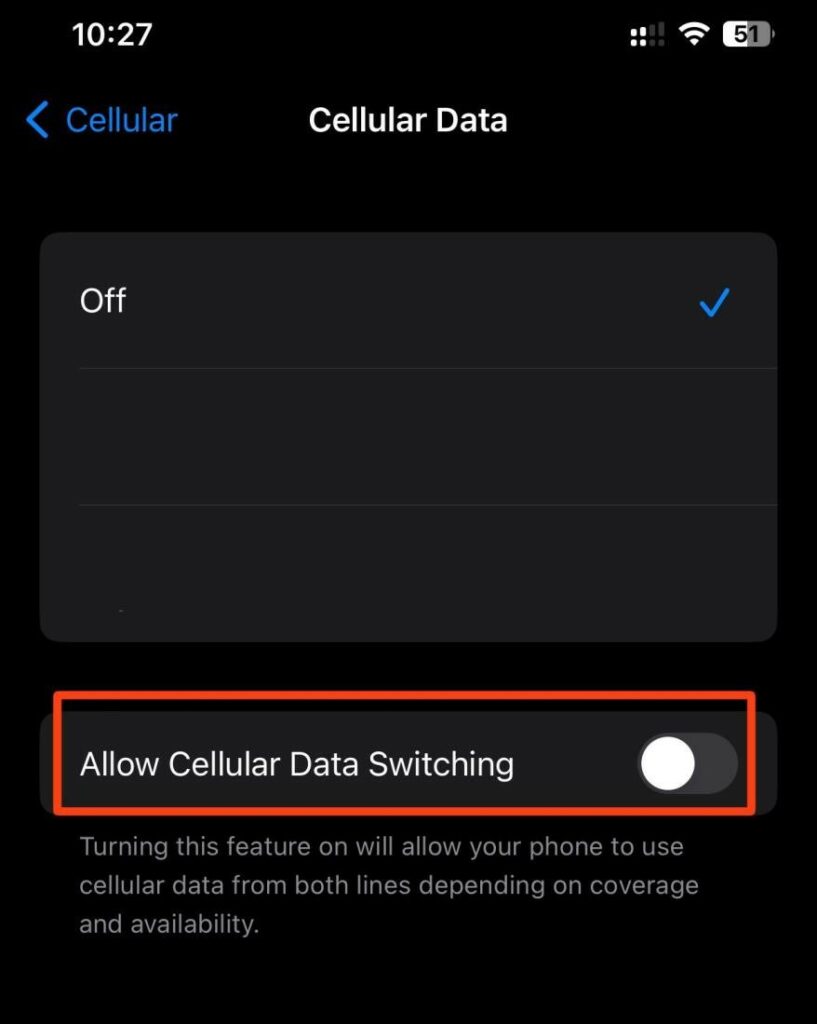 Another thing that you can try is turning off the mobile data and then enabling it again. Since mobile data is responsible for cellular internet connectivity for your iPhone, disconnecting and connecting it may resolve your SOS mode problem. So, open settings and: