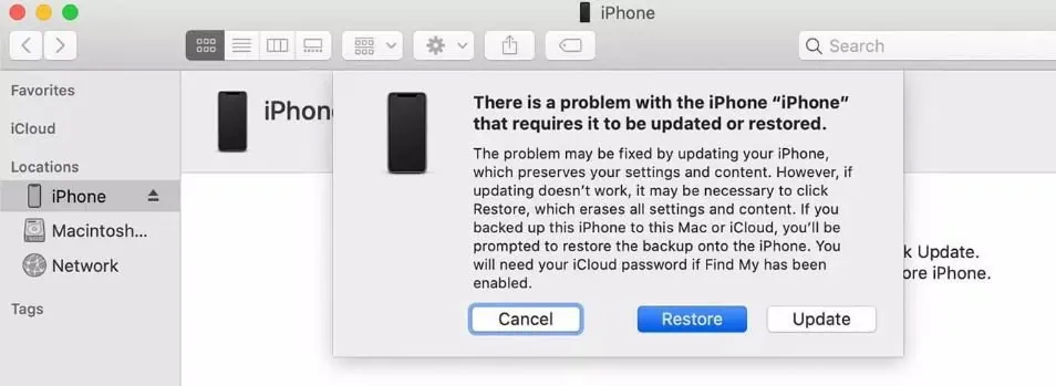 iTunes will show a pop-up window. Choose to update and update your iPhone with iTunes. This way, updating the recovery mode will help you eliminate the SOS mode.
