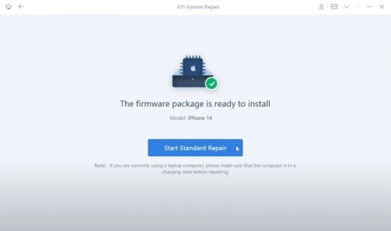 When the firmware file completes downloading, you will see the screen saying that it is ready to install the package. Click Start Standard Repair to begin repairing. Once you start, wait patiently and let the tool do its job.